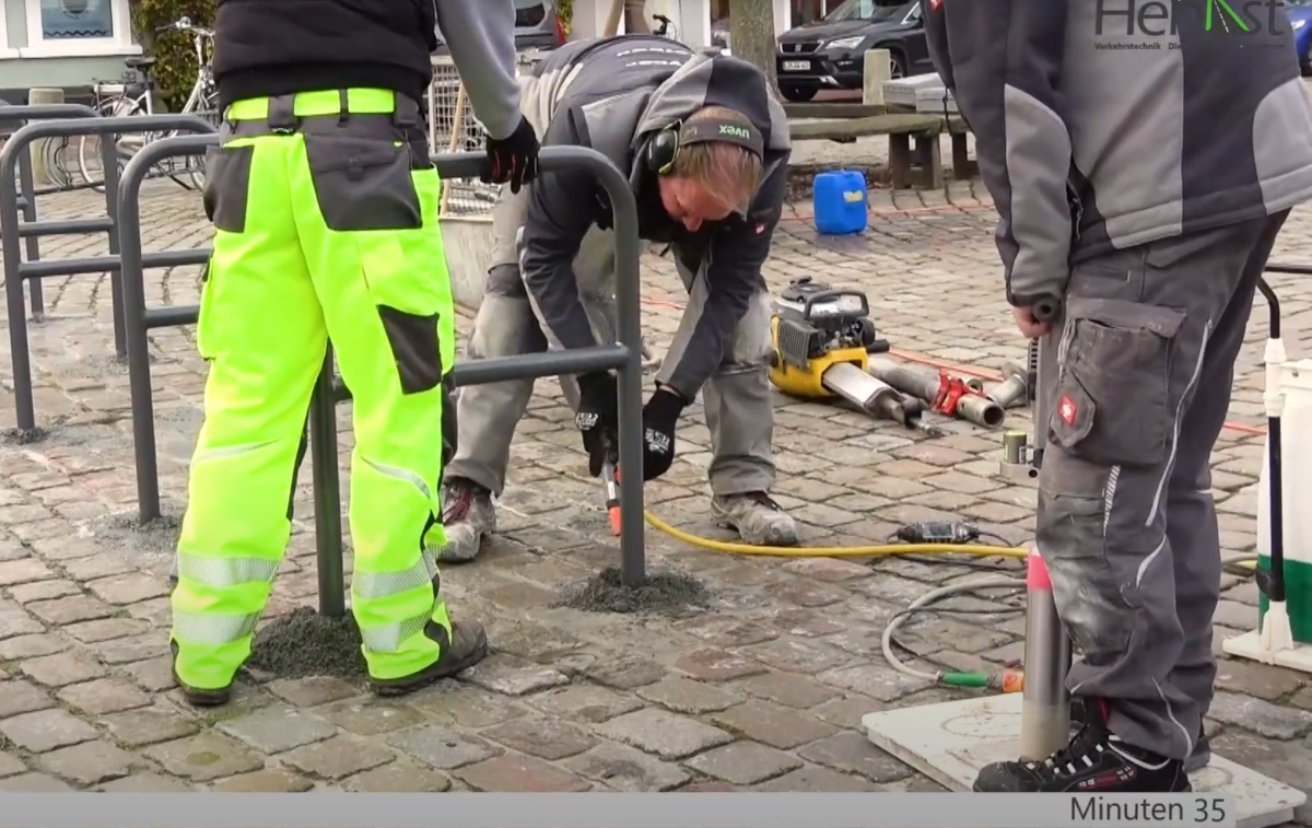 Muss man sehen, um es zu glauben: Wie man in Rekordzeit Fahrrad-Anlehnstationen verankert, dabei bis zu 80 % Beton-Ersparnis erzielt und so mehr als 10.000 Gramm CO2 pro Bodenanker spart, erfahren Sie in diesem Video.